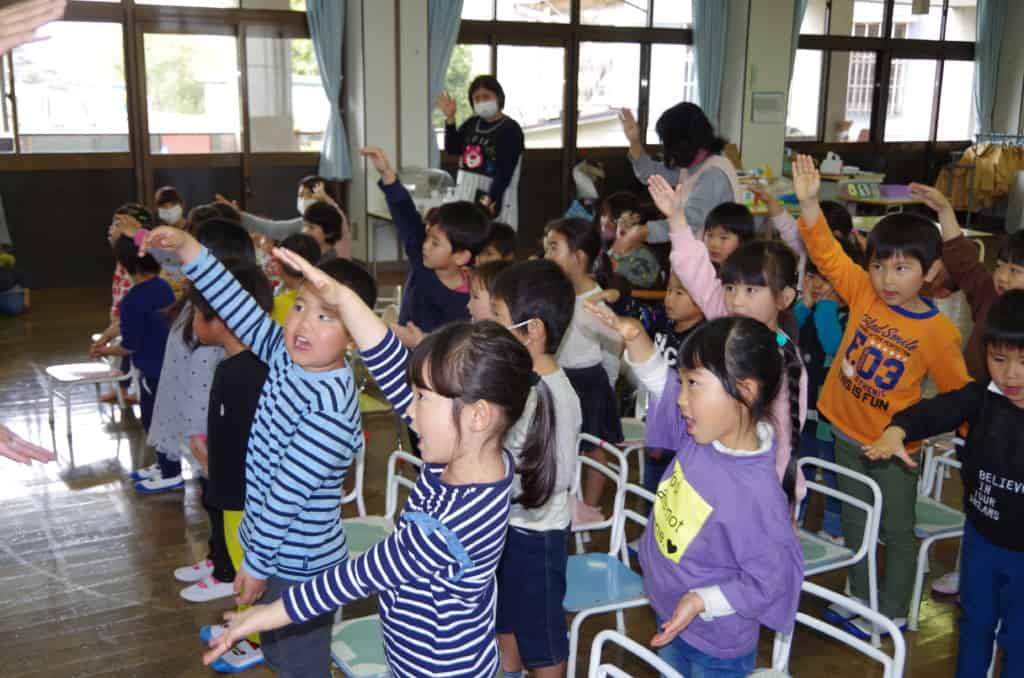 入園式・進級式 2021 4/02 たらぎ保育園Now 入園式・進級式 4月1日は入園式・進級式でした。なかよしルームに集まり、担任の先生から点呼を受け全員大きな声で返事ができました。「もうすぐ保育園」と「春ですね、春ですよ」の歌を歌って記念写真に収まりました。新しい1年が始まります。頑張ります。 たらぎ保育園Now 園庭の桜が咲きました。 入園式・進級式(写真8枚) 関連記事 七夕交流会をしました 2025年7月15日 6月の熊日童話会 2025年6月20日 ハロウィンを楽しみました 2024年11月8日 川遊びに行ってきました 2024年8月6日 夕涼み会を楽しみました 2024年7月31日 七夕交流会 ありがとう 2024年7月5日 プール掃除をかんばりました! 2024年7月4日 楽しかった泥んこ遊び 2024年6月13日